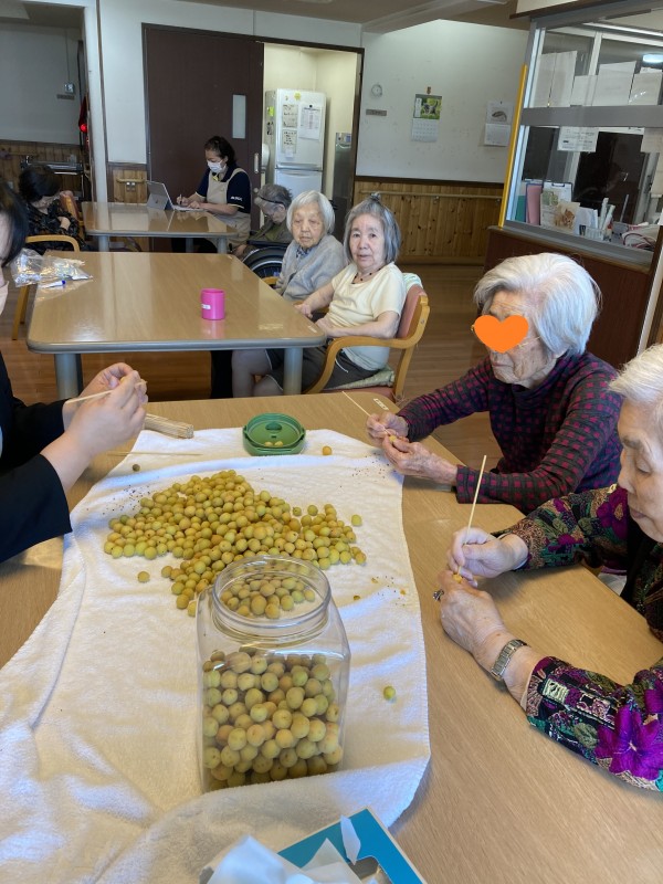 まずは梅のヘタを、一つずつ丁寧に取っていきます。
