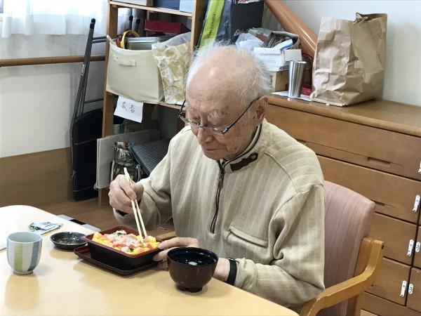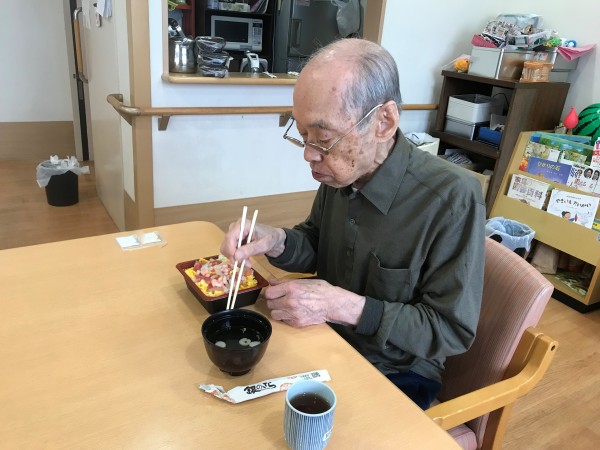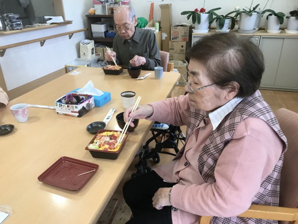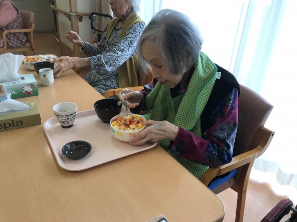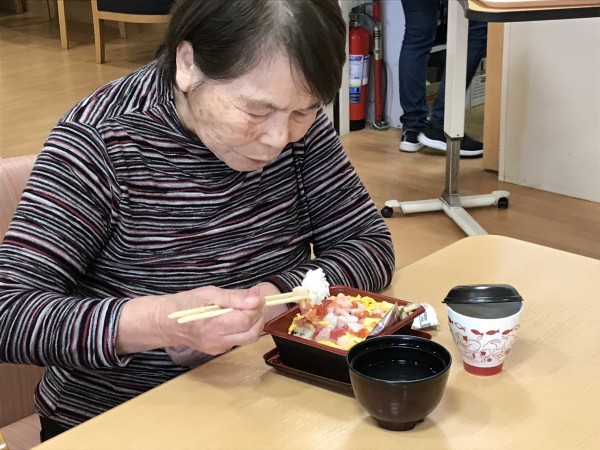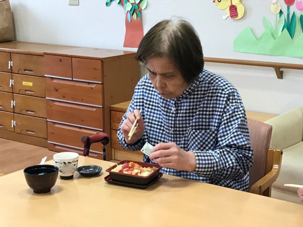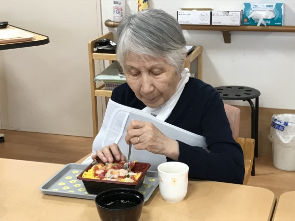 今年の母の日は5月14日ですね!食事レクとして、宅配のばらちらし寿司を注文して昼食に皆様にお出ししました♪皆様とても喜ばれて食が進んでいましたね!「今日は母の日ですね」とお声掛けすると、「そうなのね~」と控えめにほほえまれました♪一番下の画像は、13日の昼食でお品書き付きの特別メニュー食「母の日ありがとうメニュー」です♪おいしく召し上がって頂きうれしい限りです!