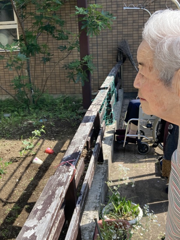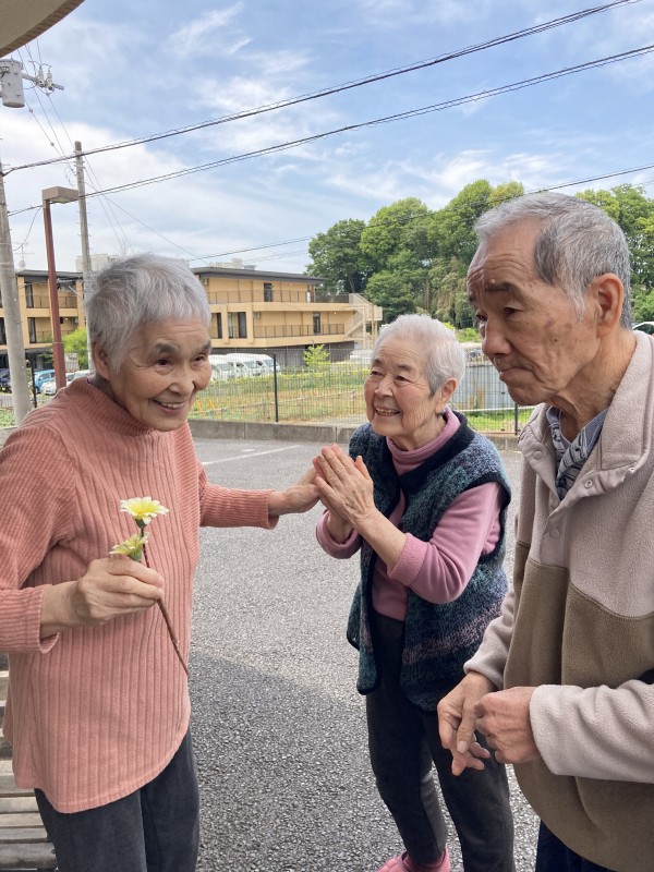 お天気に誘われて皆さんと中庭で外気浴~
