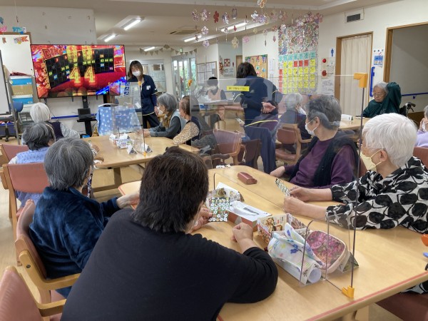 皆様楽しまれており、ビンゴを当てた時のご利用者様は満面の笑顔でした。