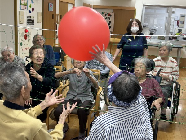 南中野お得意の風船バレーを全フロアに声掛けして行いました。