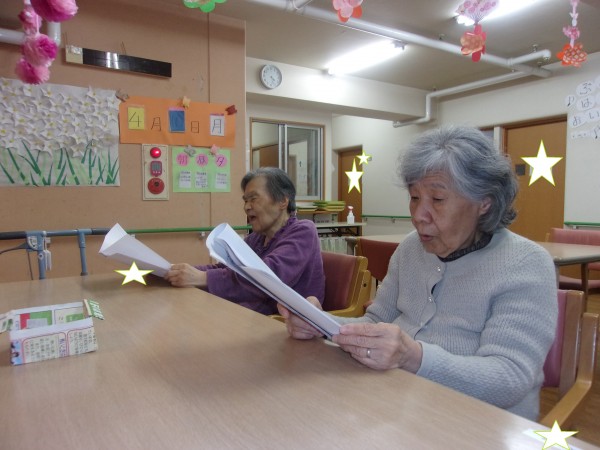 次回の歌のレクリエーションが楽しみですと思われています。