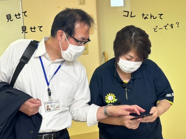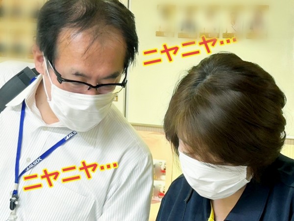 糟谷部長と松井ホーム長が、ニヤニヤしながら何か見てます。