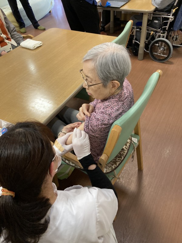 筋肉注射なので痛みを伴いますが、入居者様はとても落ち着かれていて担当の先生に感謝の言葉をかけられていました