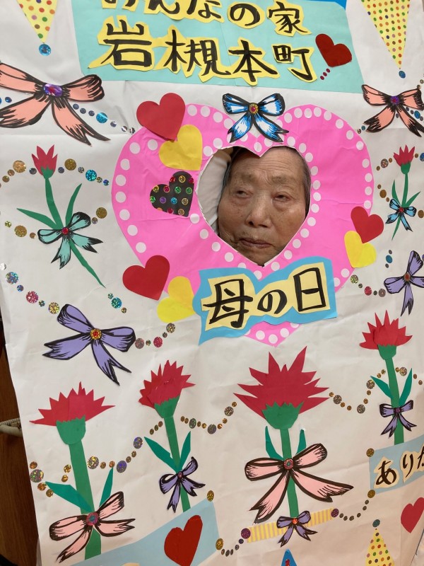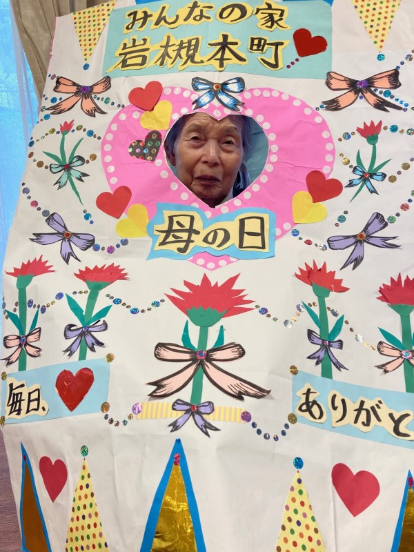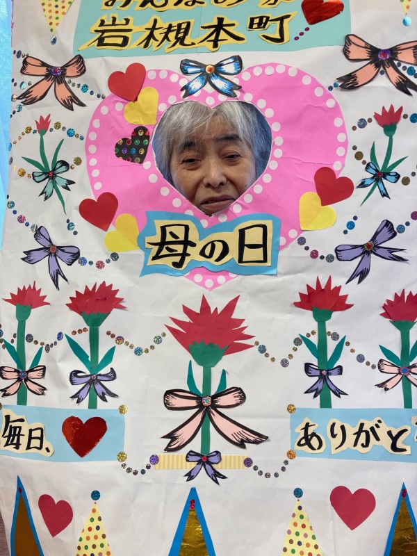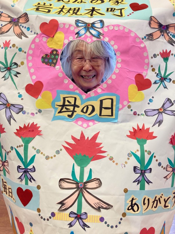 ↑職員が、手作りの母の日オリジナルパネルを作成し、お祝いをかねて