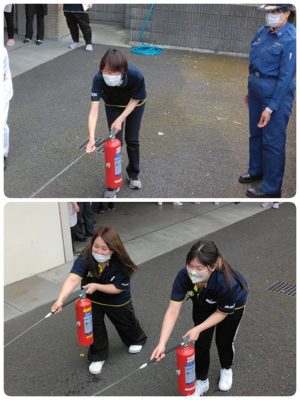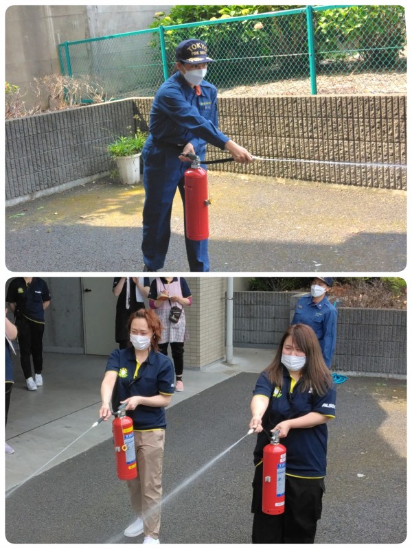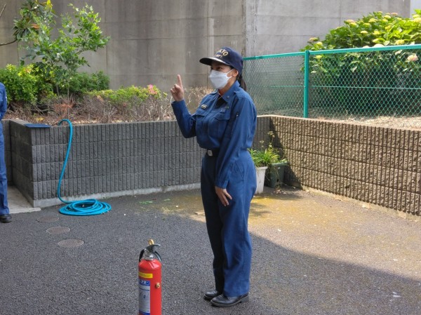 消火器の場所を今一度確認することや、天井まで炎が到達したら消火をやめて逃げること等々、消防のいろはを教えて頂きました。