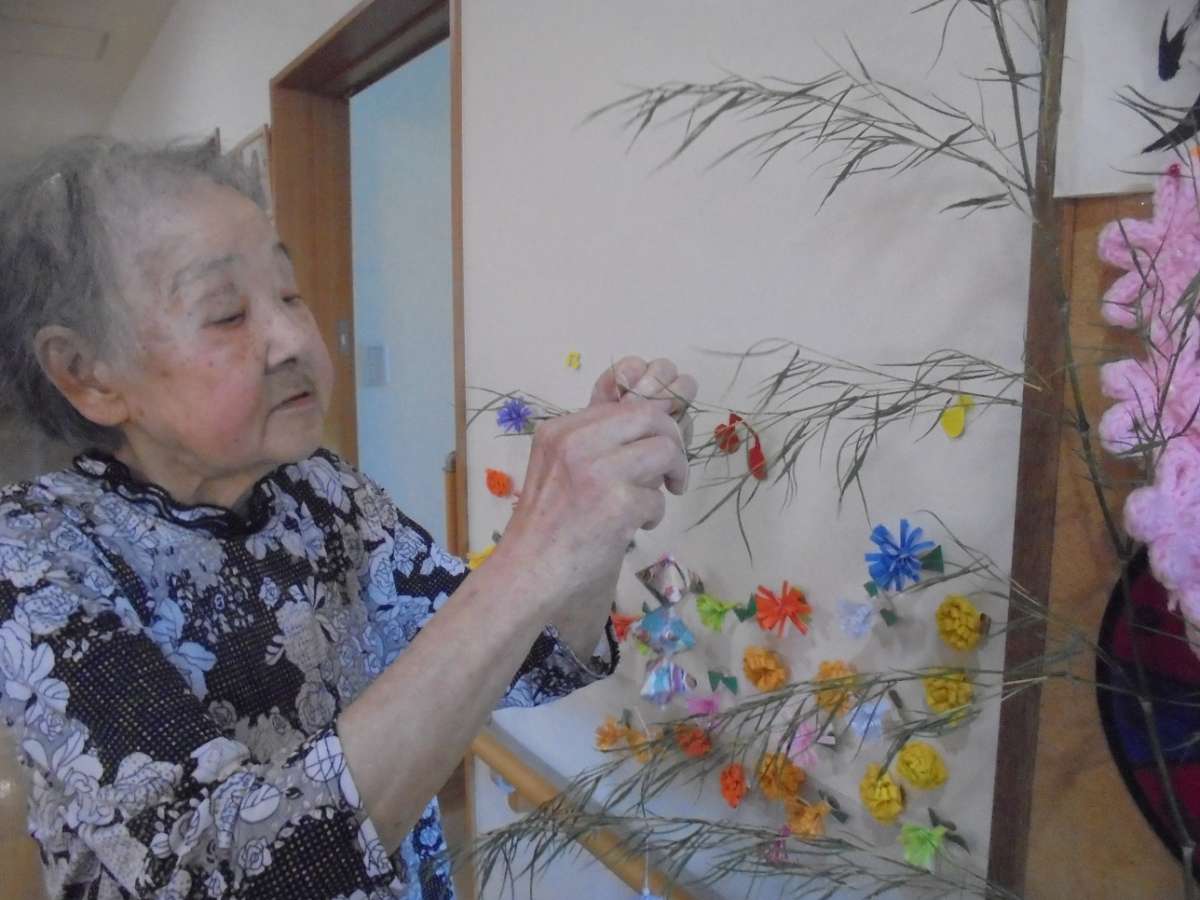 今年もみんなで短冊に願い事を書き、飾りを作り