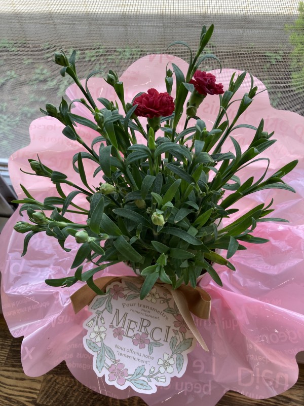連休中にご家族に頂いたカーネーション。ひとしきり咲いた後に可愛い蕾がいくつも出てきました。「見て、つぼみがこんなにあるの。」「絶対咲かせるね」と、お世話にいそしんでいらっしゃいます(^^)