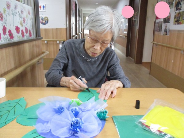 壁面飾り・あじさいヴァージョン みんなの家田端2階の介護ブログ