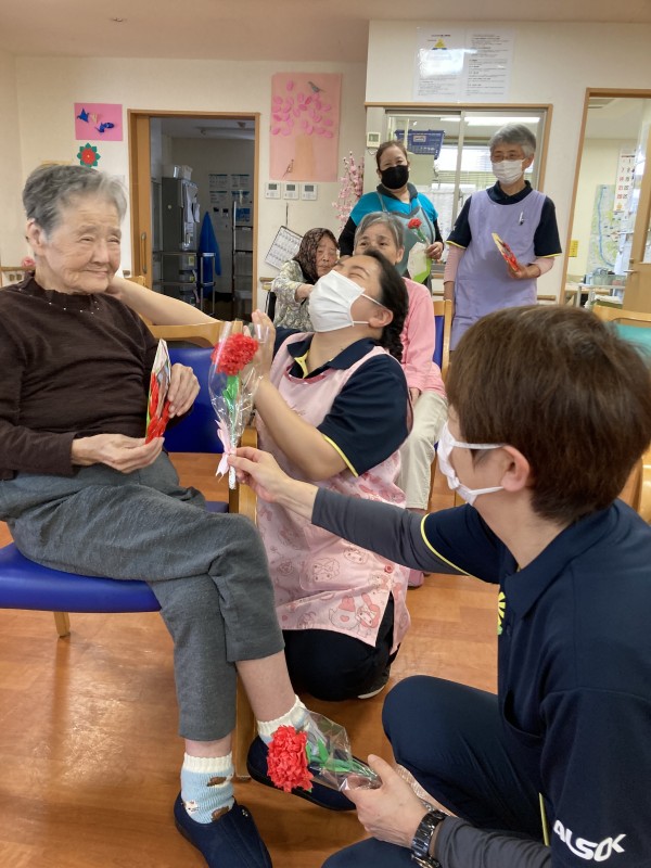 スタッフからは手作りのカーネーションと写真入れを贈りました!