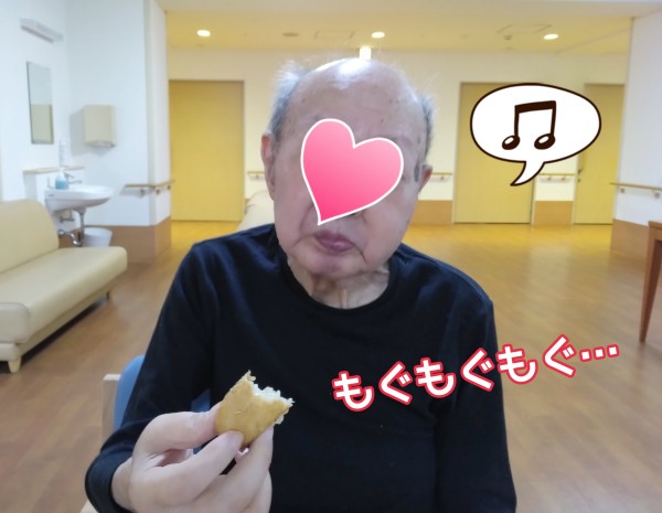ご家族様からの差し入れを召し上がりながら、ご家族様のお話をされるお父様は