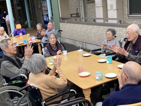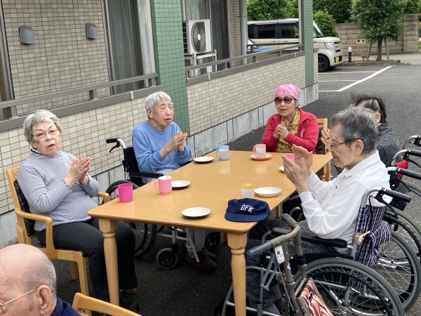 今日は3時に外にでてお茶をしました。みんなで歌って楽しかったです♪