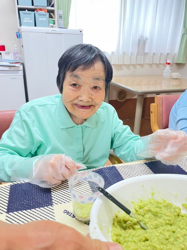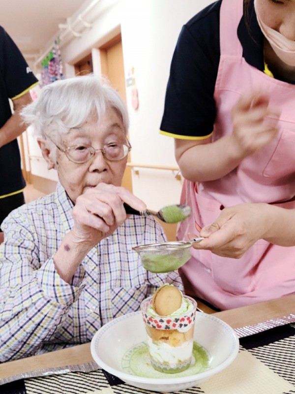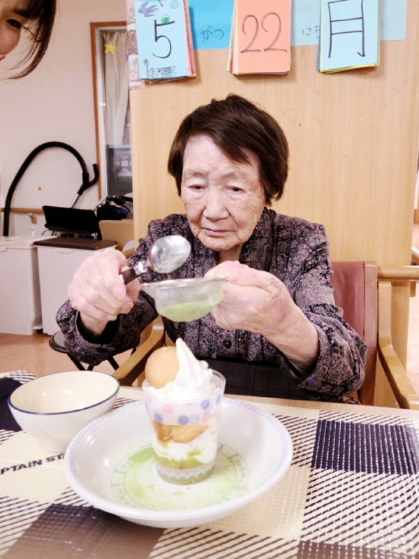 グループホームみんなの家大宮三橋 夏も近づく八十八夜~♪2階!抹茶パフェ作り!