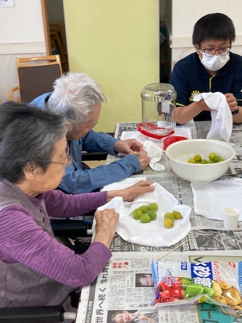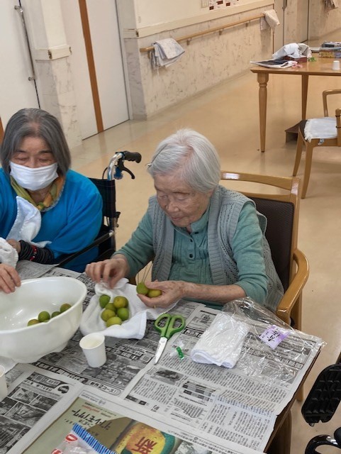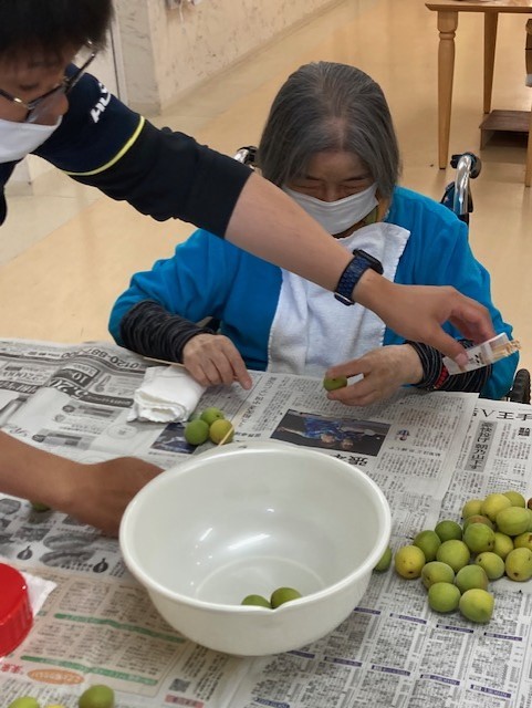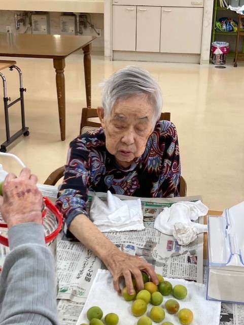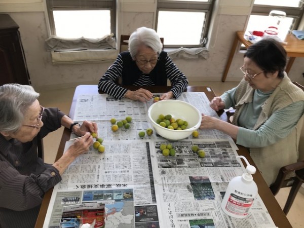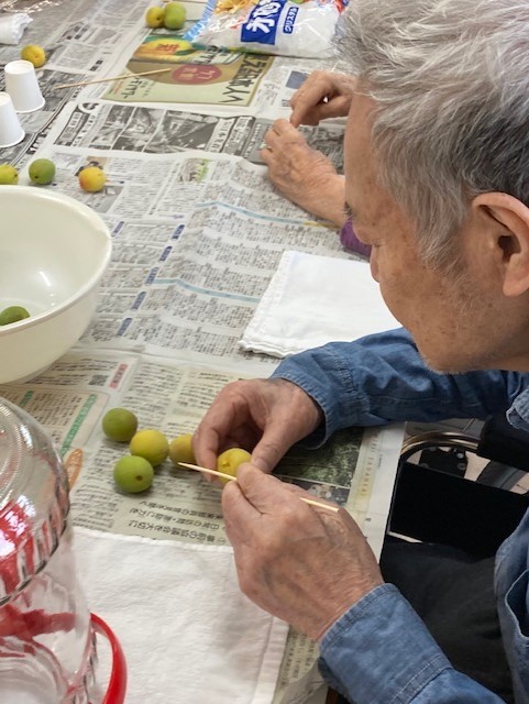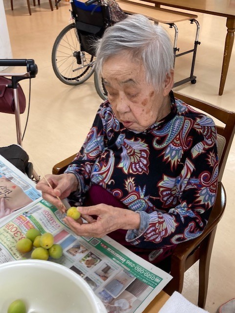 とはいえ今現在おじいさま、おばあさまは皆で梅のヘタを取っております(*´▽`*)