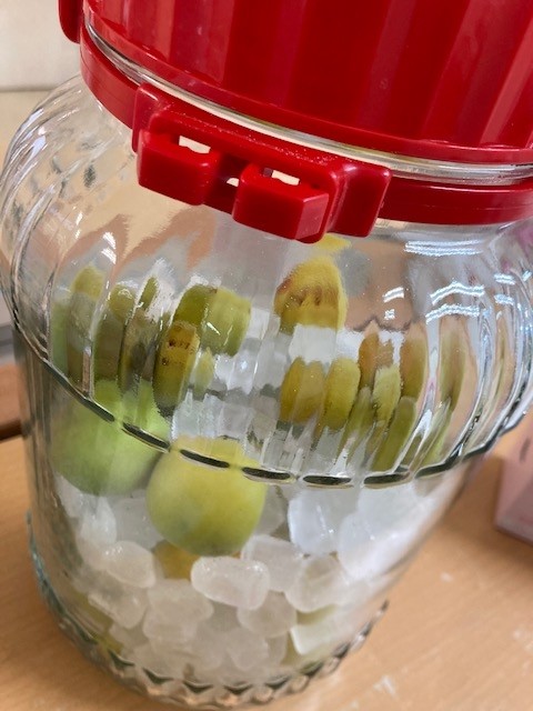 …えー!ネットでは10日くらいって言ってたのに果実酒瓶の説明書では1ヵ月になってるー(。-`ω-)とりあえず頑張ってみよう