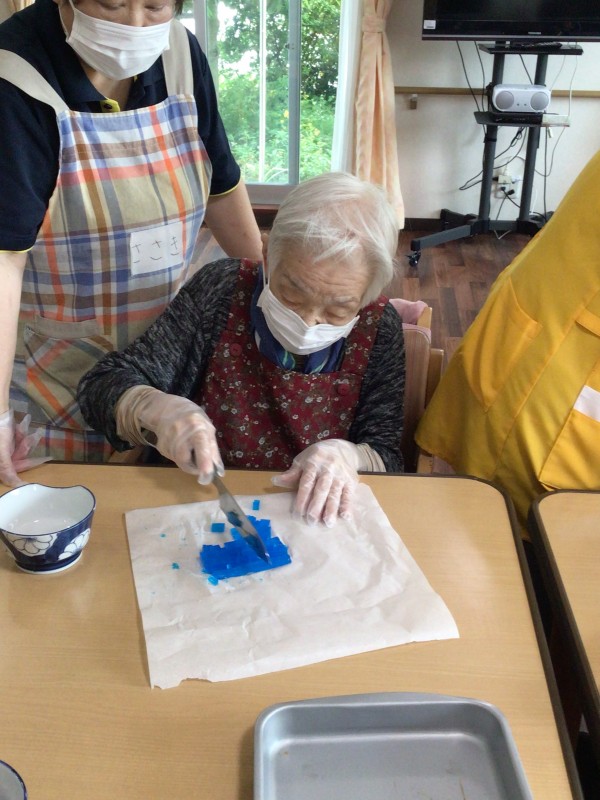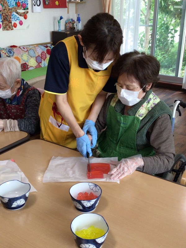色とりどりのゼリーを切って・・・
