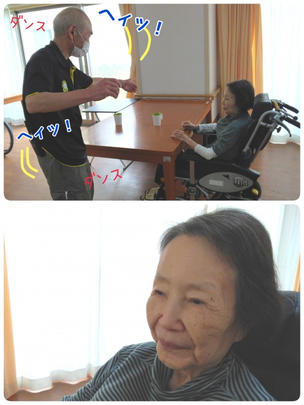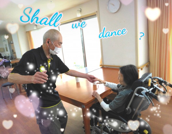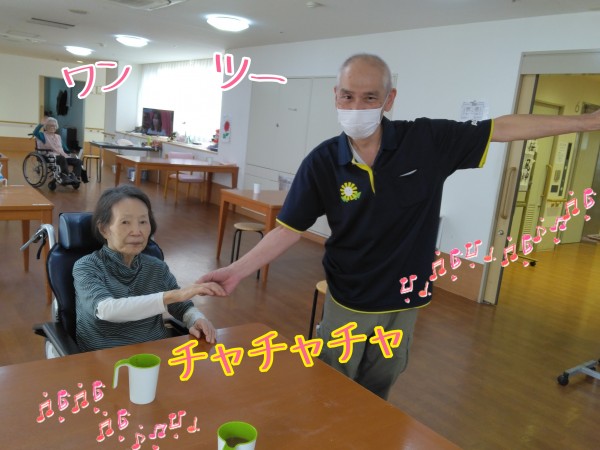 リビングでは、社交ダンスがご趣味の奥様の前で、久保ケアスタッフが得意のステップを披露。