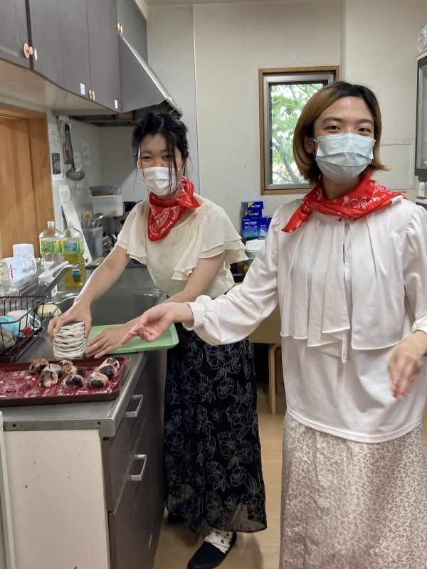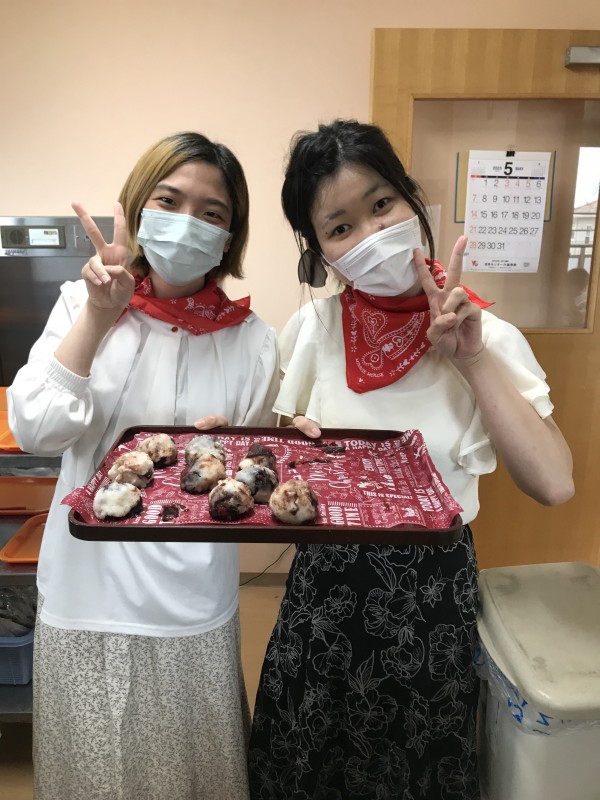 若い女性職員2人が、朝から買い出しに行き、お楽しみ会の時間まで、人数分せっせと作ってくれました( *´艸`)
