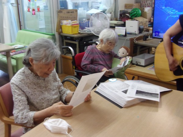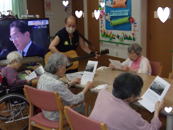 ギター演奏の演奏と入居者様のいい歌声で施設内の場の空気が良くなりました。(^^♪