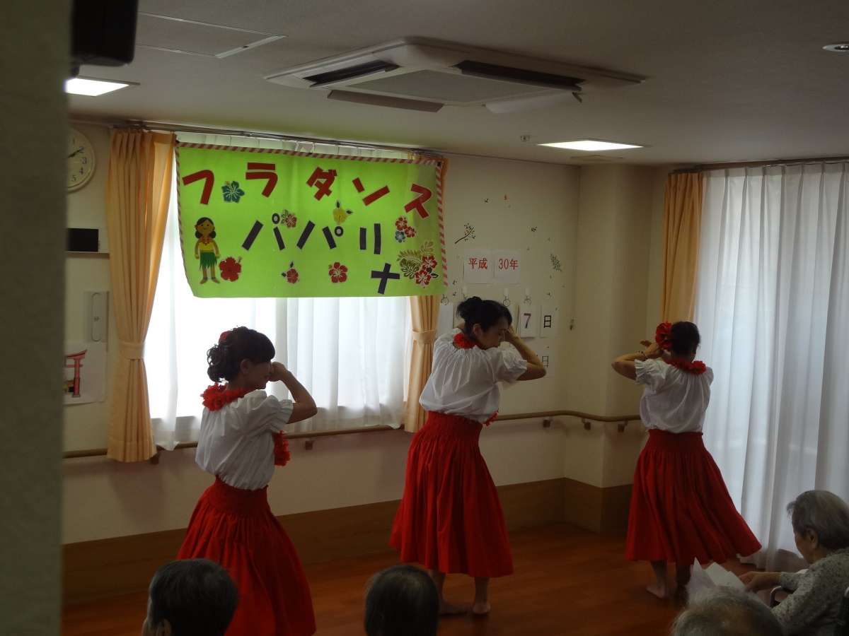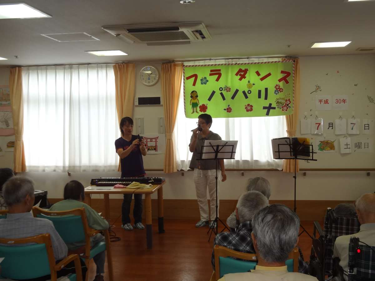 7月7日ホームで七夕会を行いました。ボランティアさん、フラダンス(パパリナ)の皆さんがホームに
