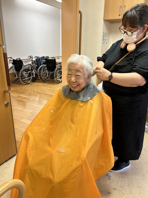 ちょっと覗きに行くと理容師さんとの会話も弾みとても楽しそう。