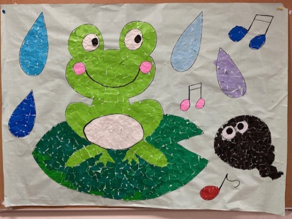 今回は6月のカエルの貼り絵が完成したのでお披露目♪どんなカエルかご紹介(^^)/
