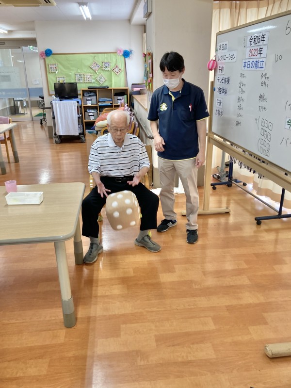 1人3投で投げた合計値を参加人数分で足して、目標値を目指す協力型のレクです。