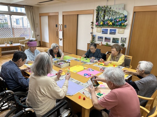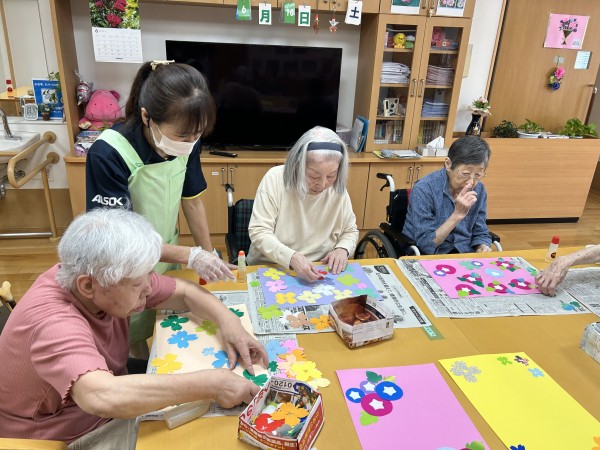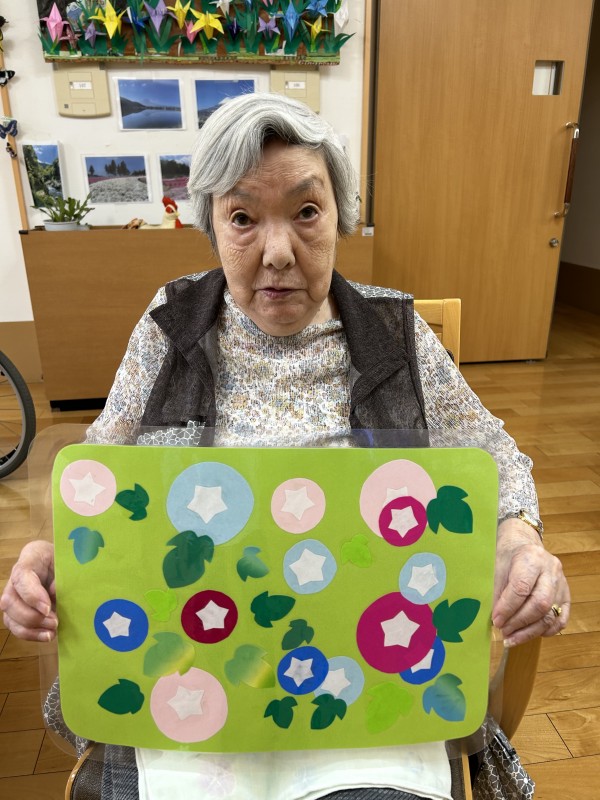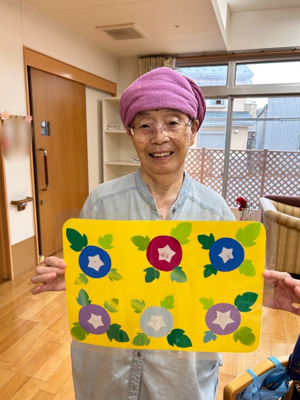 午前中に朝顔を作り終え準備万端!おやつの前にお声掛けして皆さんに集まって頂きました。