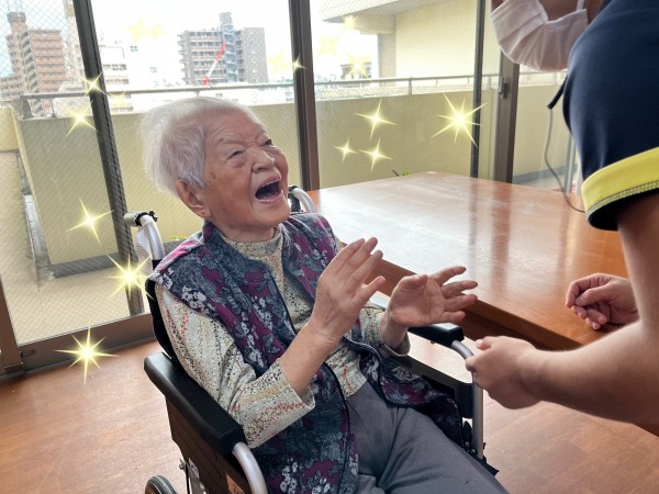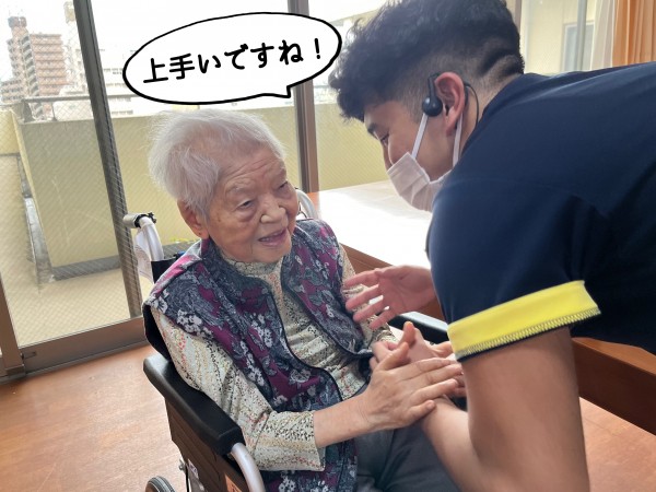 上手いですね!と職員から言われると、これまた笑顔が素敵なのです。