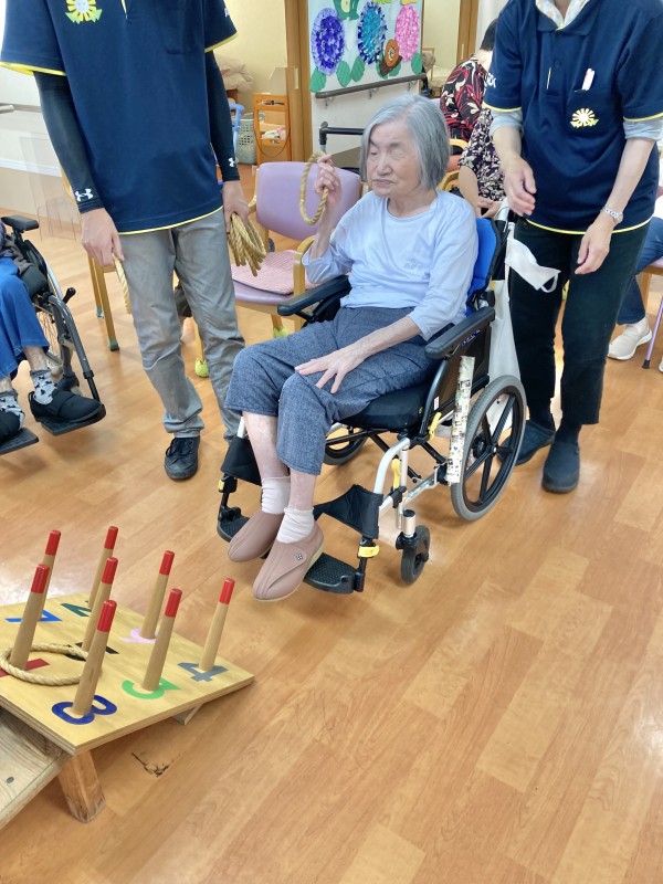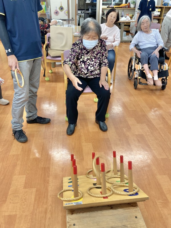 皆さん、一生懸命に投げておられました。意外と距離が近いと思いますが、なかなか入らない様で「あれ?」と仰られていました。