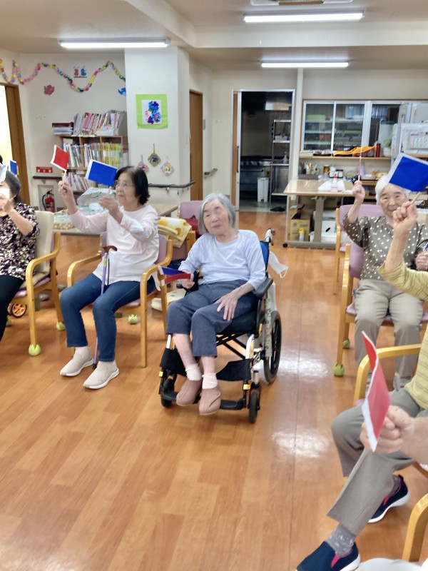 約15分、全身を動かした後、最後に旗揚げで腕と脳をしっかり動かされていました。