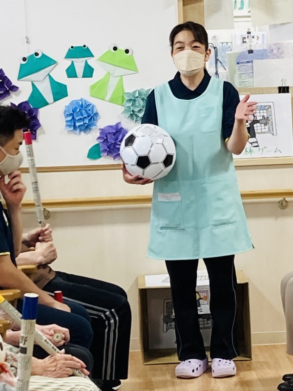 サッカーボールが自分のところに来ると大歓声があがります!