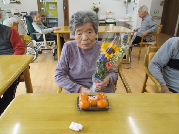 お花とおみかんをお持ちくださりました!! ひまわりやりんどうのお花綺麗ねとみなさんでお話しされていました・・・///