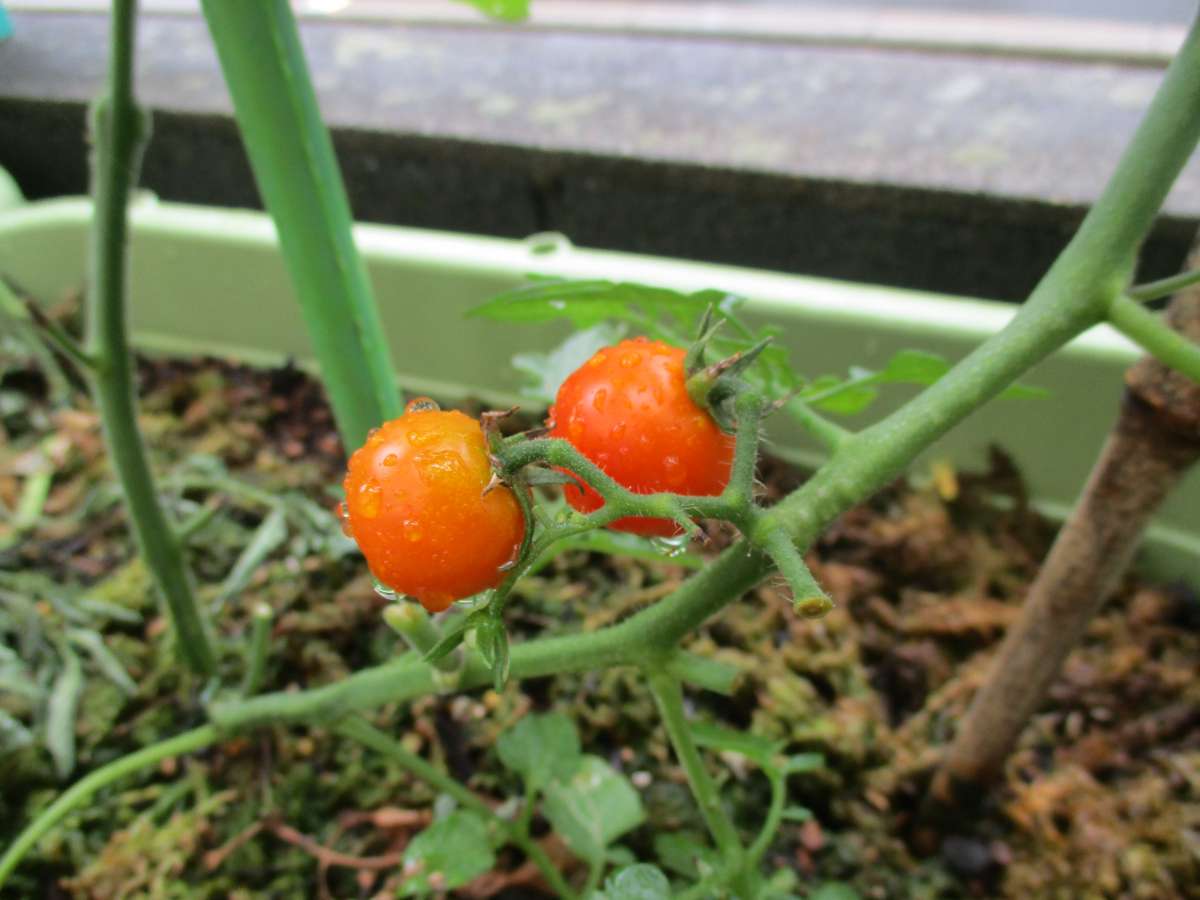 ミニトマトはちらほら実がつき始め、赤い実もつき始めました♪