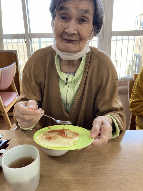 今日のおやつは職員がクレープを焼き、