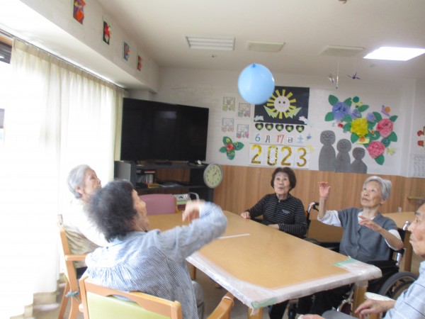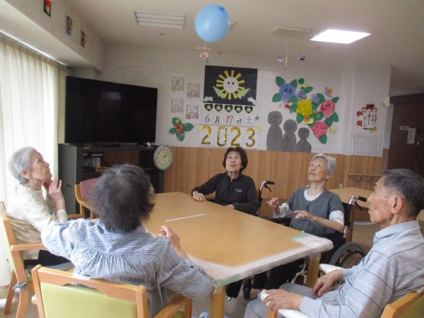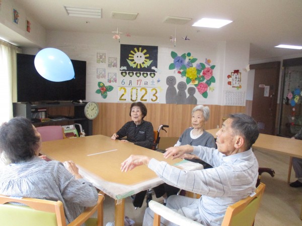 「さぁ!!皆さ~ん!!久しぶりに“輪”になって風船バレーで身体を動かしましょう!!」と声掛けるも、