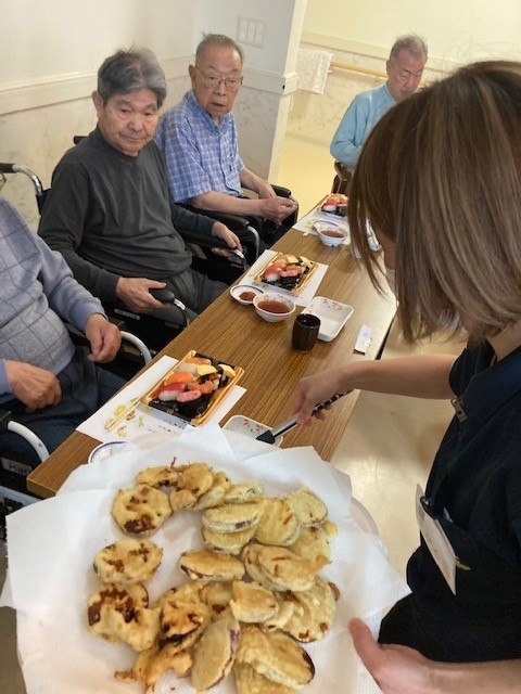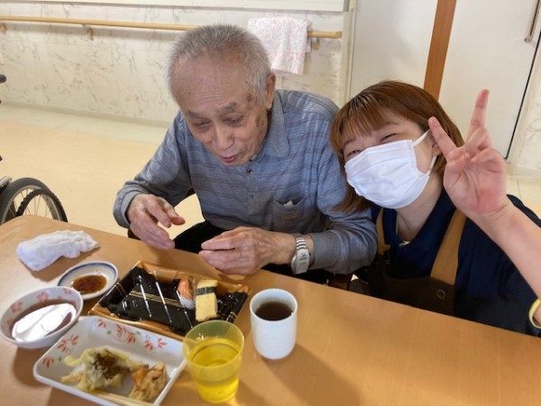 天ぷらとお寿司…なかなか施設では召し上がれる機会ってないんじゃないかな~(=^・^=)