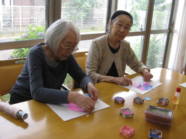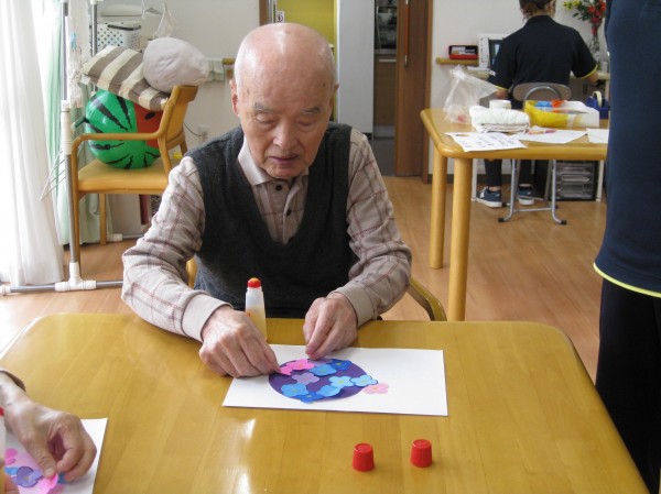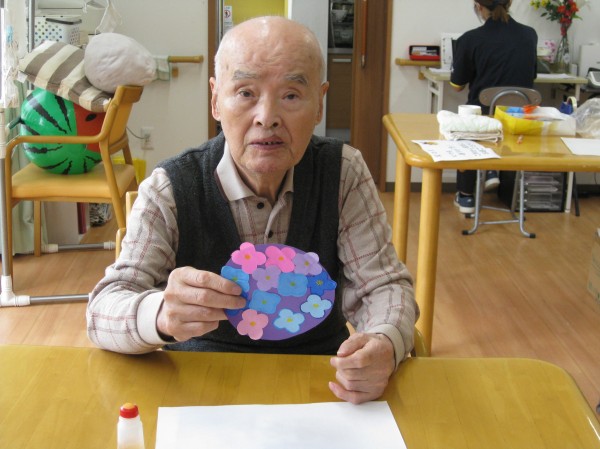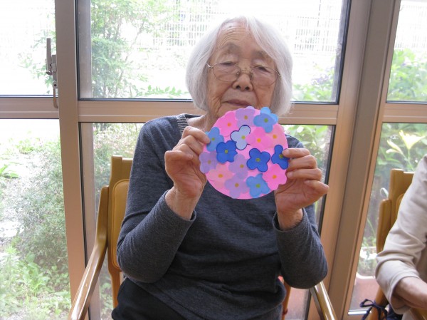 こんにちは! グループホームみんなの家・あきがせの介護ブログです! よろしくお願いいたします。今日は紫陽花の貼り絵を行いました。その時のご様子をお知らせいたします!