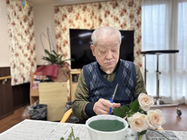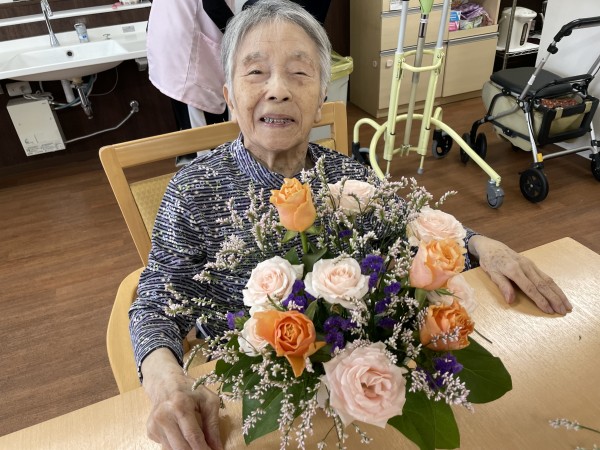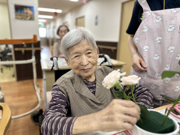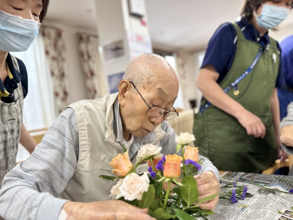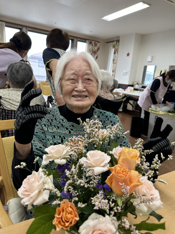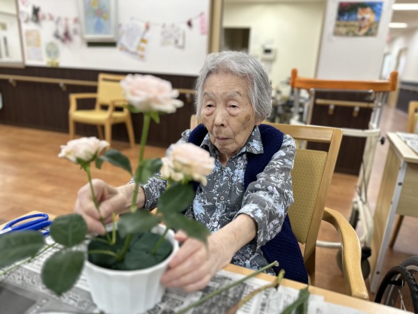 自立している方々がほとんどですが、集中して出来ますし、綺麗な色や香りで刺激もありますし、楽しめますので、とっても楽しいレクの時間でした☆