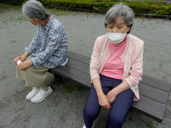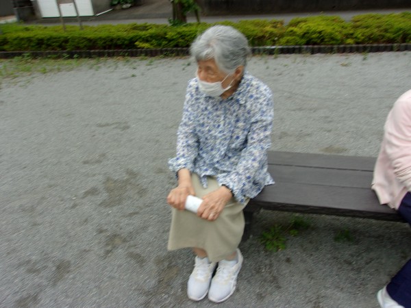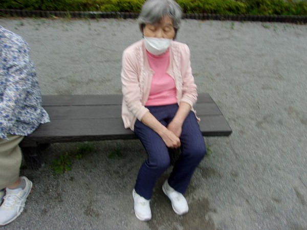 色々な所を歩いて疲れて入居者様ベンチに座り休憩してします。