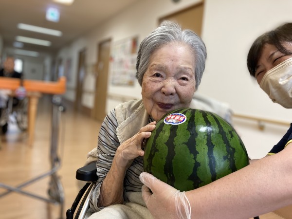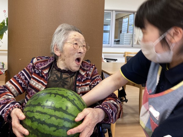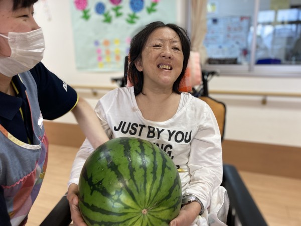 先日ご家族さまから大きなスイカを頂きました(^-^)