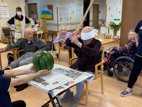 みんなでスイカ割りしたご様子です!