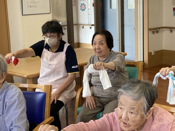 先日、三郷2ではリモートにてタオル体操が行われました!(*‘∀‘)