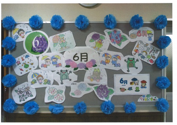 アジサイやカエルちゃん、どれも6月らしいモチーフ。壁がにぎやかになりました♪