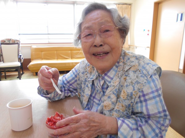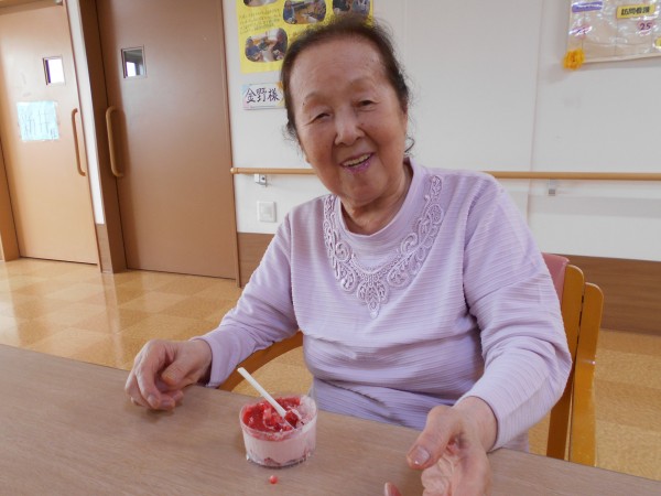 おやつにはストロベリーアイスを召し上がりました。