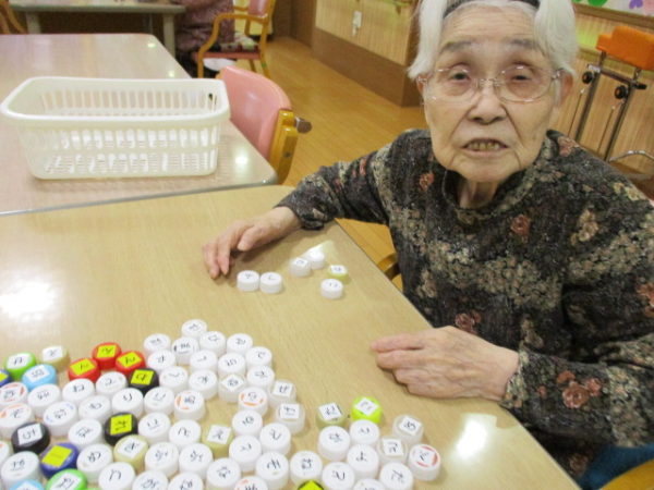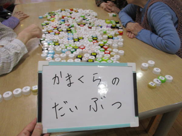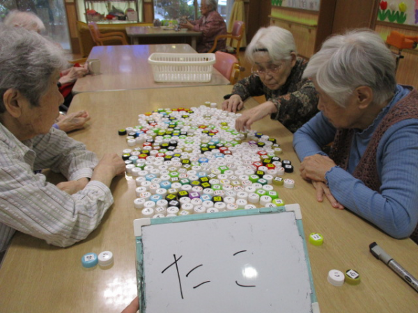 スタッフが「ことば」を考えて伝えます。ご利用者様はキャップの文字を探して伝えた言葉を作っていくゲームです(*^-^*)