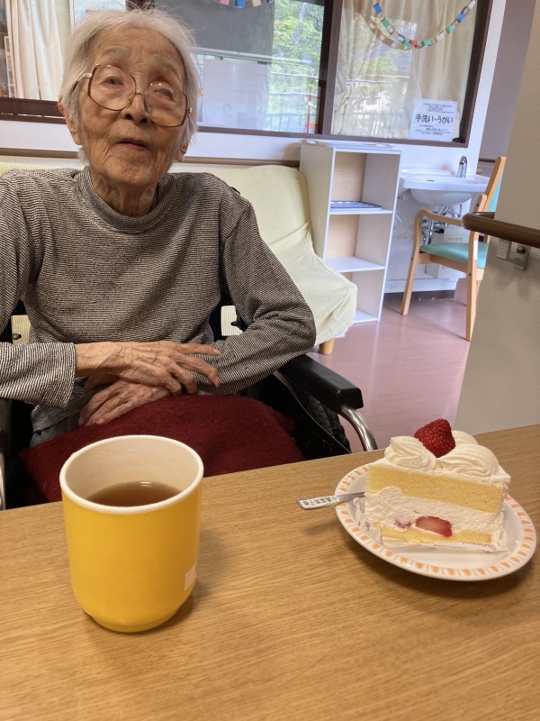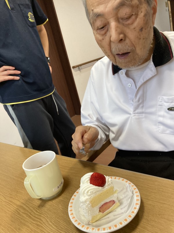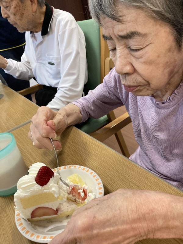 誕生日会では久しぶりにケ-キを提供したのですが入居者様は大喜びです