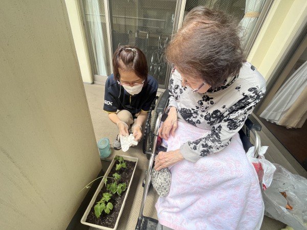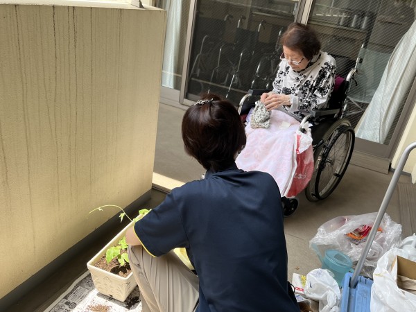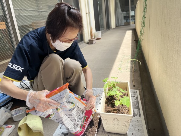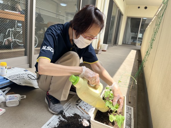 植えかえた朝顔にお水をあげながら、「今年は、どんな朝顔が咲くのかなぁ」