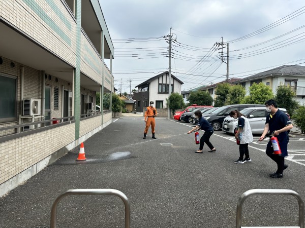 職員達が実際に消火器を使用して消火訓練してみました