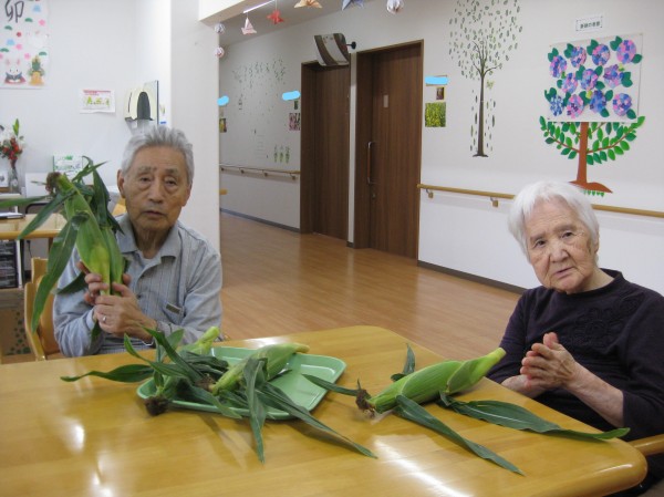 こんにちは! グループホームみんなの家・あきがせの介護ブログです! よろしくお願いいたします。 今日はご家族様からとうもろこしのお届け物がありました。そのご様子をお知らせいたします!